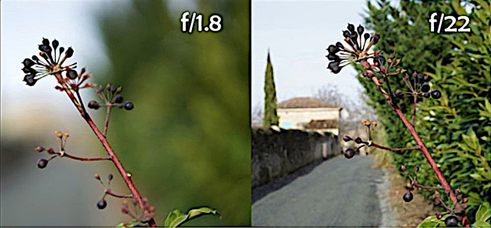 ◦ Par exemple, une petite ouverture (F22) augmente la profondeur de champs et une grande ouverture (F1.8) la réduit.
