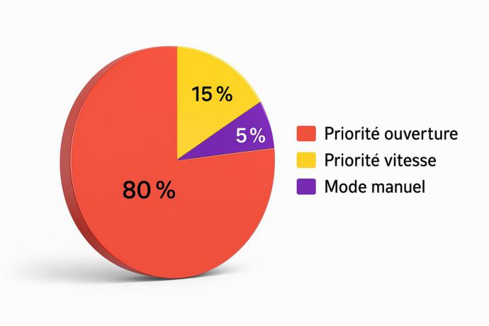 - Priorité Vitesse : pour imposer un temps de pose afin de flouter ou de figer les mouvements du sujet ou de l'arrière plan.